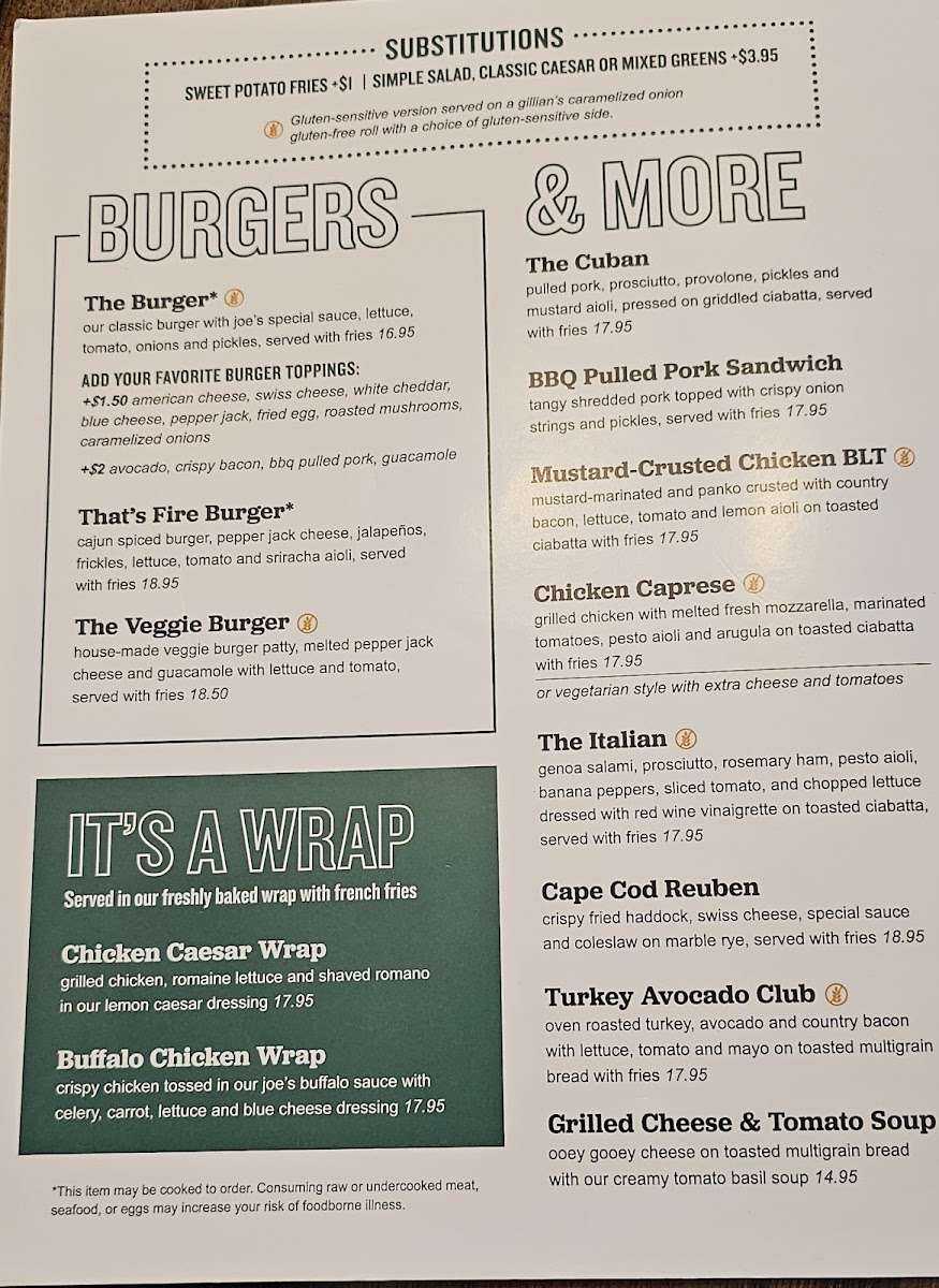 Not Your Average Joe's - Woodbridge Menu